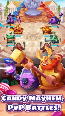 Enter the candy-coated arena of Candy Champions – a unique match-3 puzzle game where candy warriors clash in real-time PvP battles. In this world of sugar and spice, your champions may be big in size but they’re lightning fast and ready to crush the competition! Get ready for a playful yet action-packed adventure that combines sweet candy fun with intense multiplayer strategy.