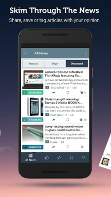 - Your very own news feed - choose the topics you want to follow and/or the topics you want blocked! Don't bother yourself with news that don't interest you!